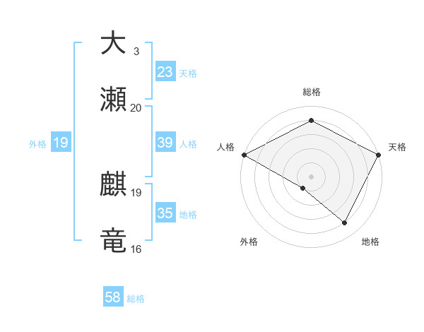 大瀬 麒竜さんを姓名の画数から五運を鑑定
