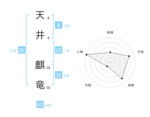 天井 麒竜さんの総格は43画の2点!