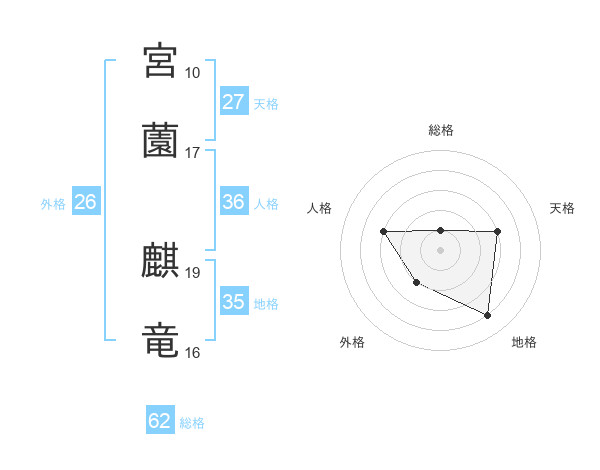 宮薗 麒竜さんを姓名の画数から五運を鑑定
