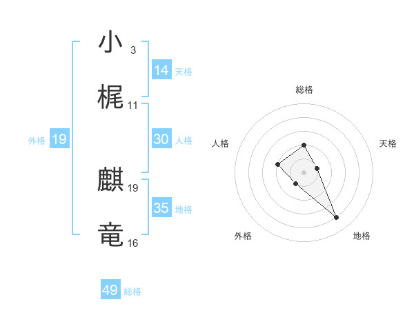 小梶 麒竜さんを姓名の画数から五運を鑑定