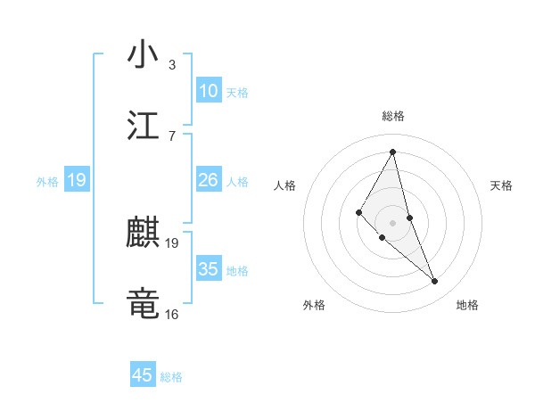 小江 麒竜さんの総格は45画の4点!