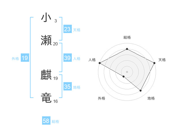 小瀬 麒竜さんの天格は23画の5点!