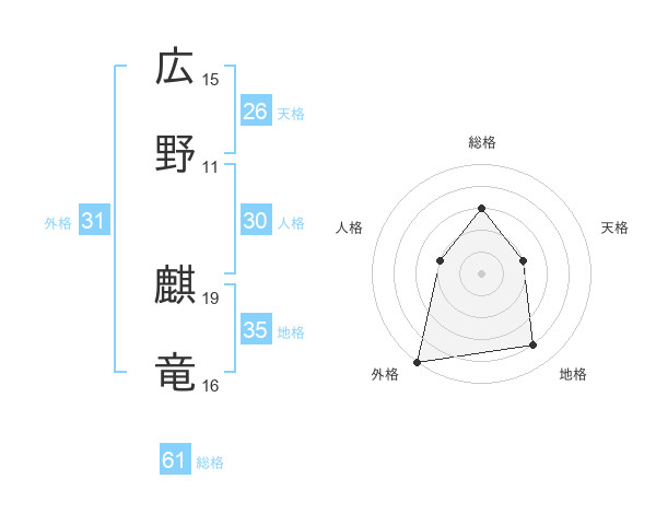 広野 麒竜さんの総格は61画の3点!
