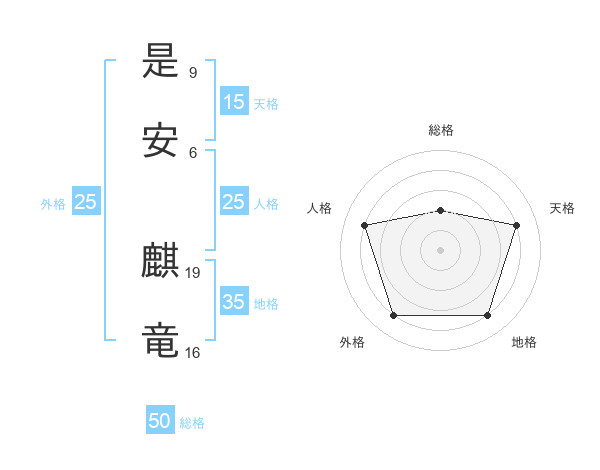 是安 麒竜さんの総格は50画の2点!