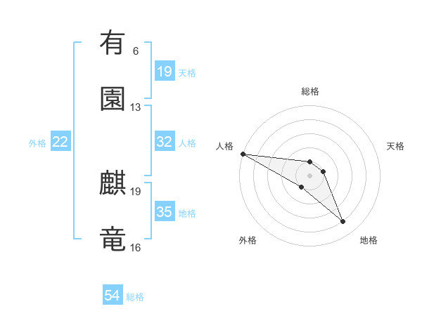 有園 麒竜さんの総格は54画の1点!
