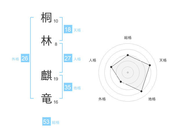 桐林 麒竜さんの総格は53画の3点!