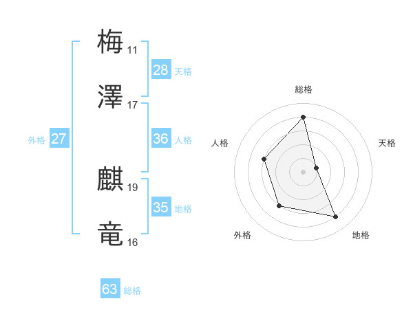 梅澤 麒竜さんの総格は63画の4点!