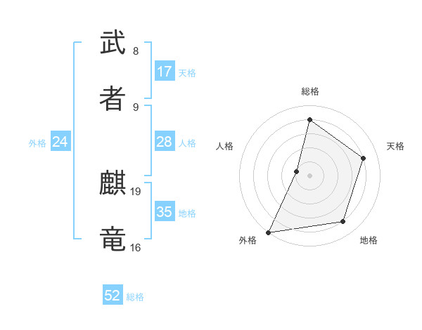 武者 麒竜さんの総格は52画の4点!