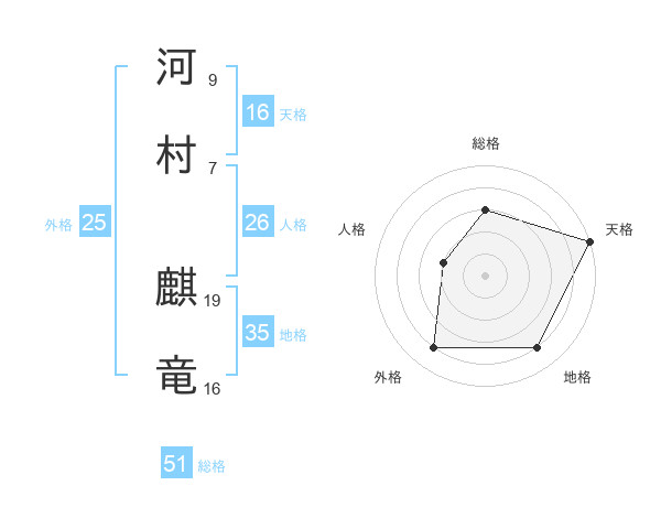 河村 麒竜さんの総格は51画の3点!