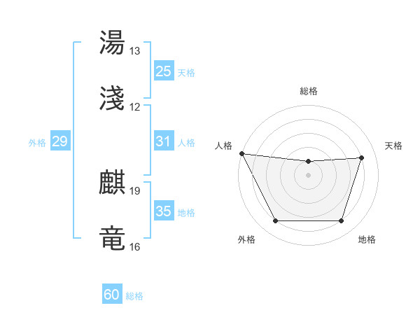 湯淺 麒竜さんを姓名の画数から五運を鑑定