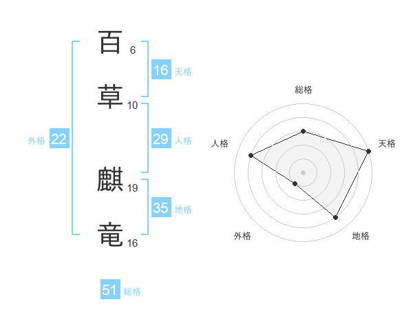 百草 麒竜さんを姓名の画数から五運を鑑定