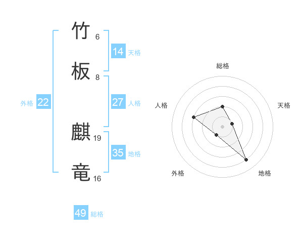 竹板 麒竜さんの総格は49画の2点!