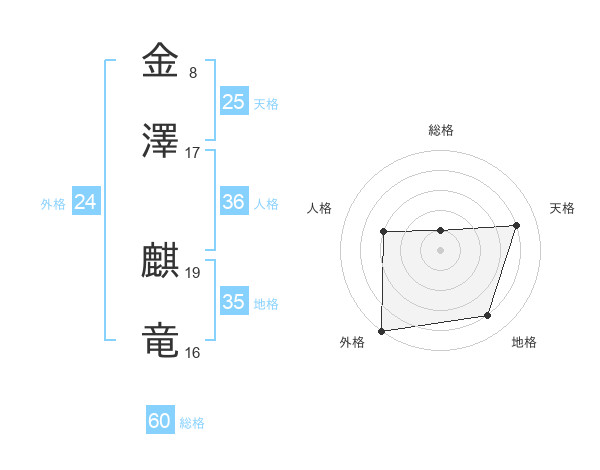 金澤 麒竜さんを姓名の画数から五運を鑑定