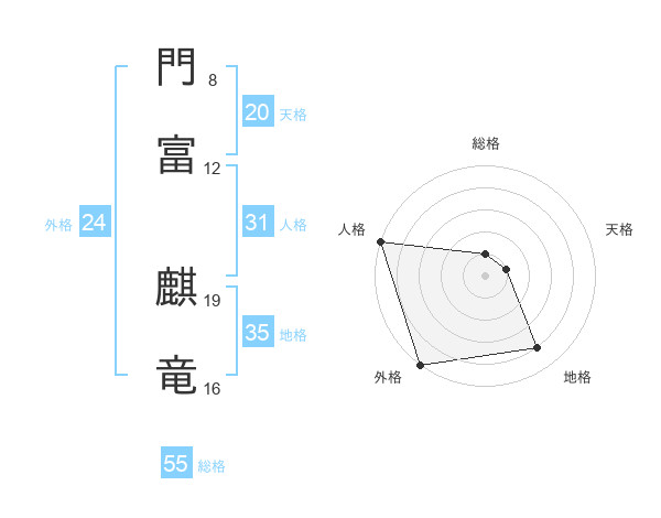 門富 麒竜さんの総格は55画の1点!