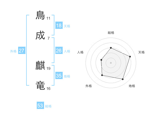 鳥成 麒竜さんを姓名の画数から五運を鑑定