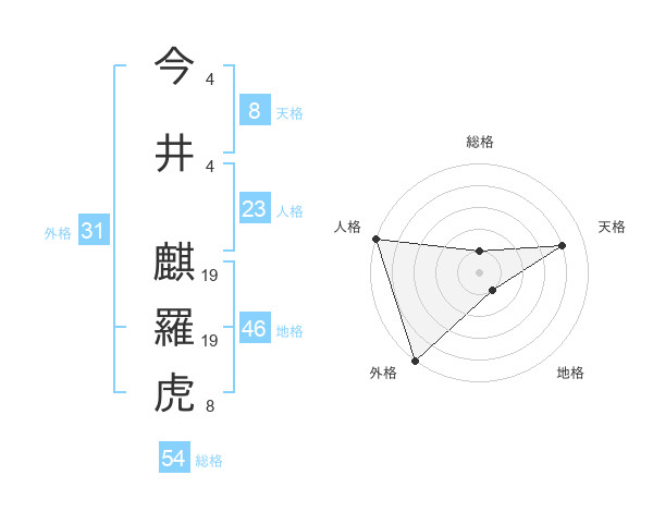 今井 麒羅虎さんを姓名の画数から五運を鑑定