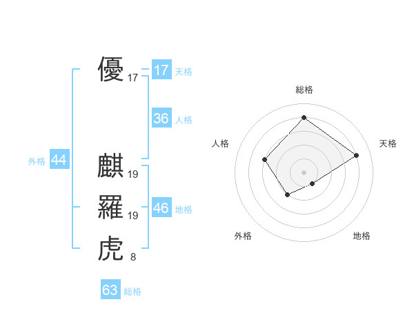 優 麒羅虎さんを姓名の画数から五運を鑑定