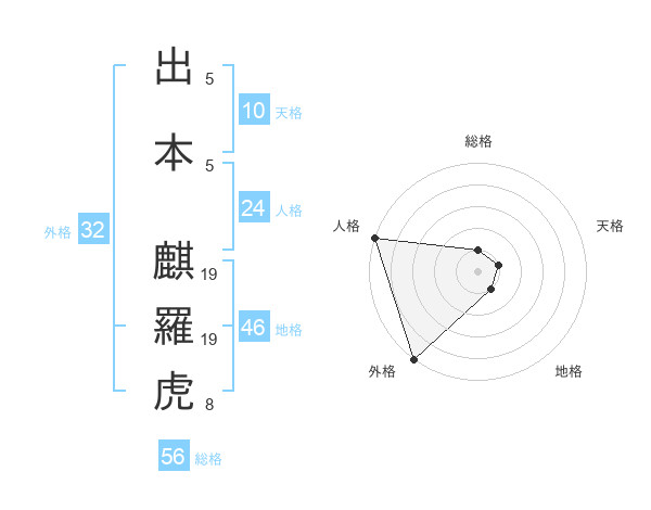 出本 麒羅虎さんを姓名の画数から五運を鑑定