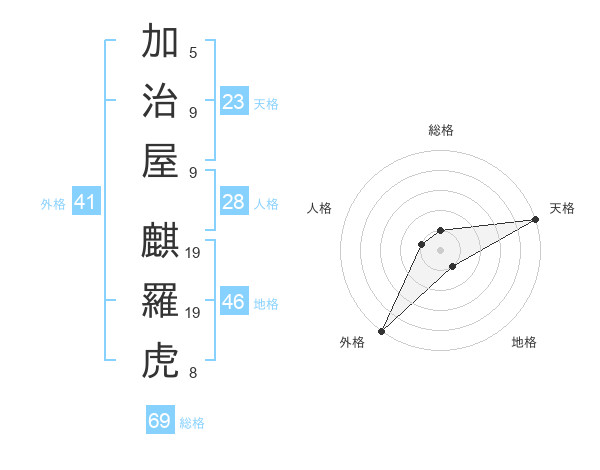 加治屋 麒羅虎さんを姓名の画数から五運を鑑定
