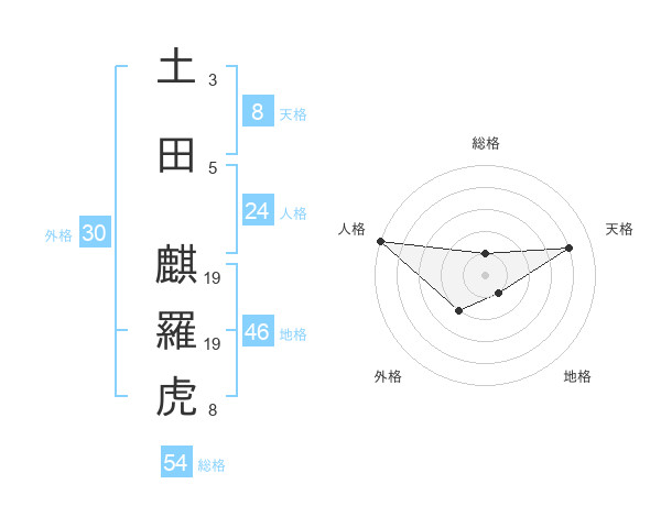土田 麒羅虎さんを姓名の画数から五運を鑑定