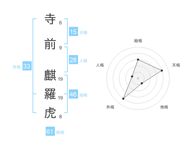 寺前 麒羅虎さんを姓名の画数から五運を鑑定