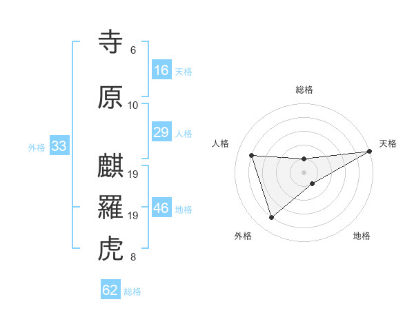 寺原 麒羅虎さんの天格は16画の5点!