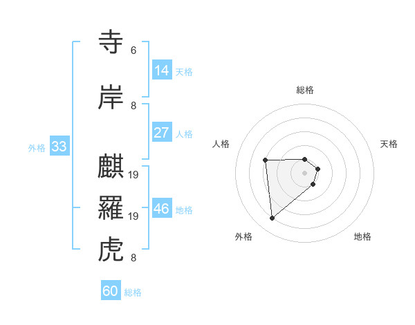 寺岸 麒羅虎さんを姓名の画数から五運を鑑定