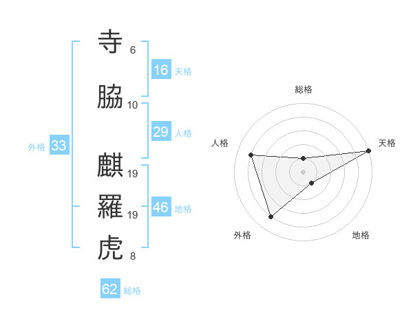 寺脇 麒羅虎さんを姓名の画数から五運を鑑定