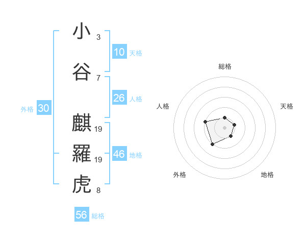 小谷 麒羅虎さんを姓名の画数から五運を鑑定