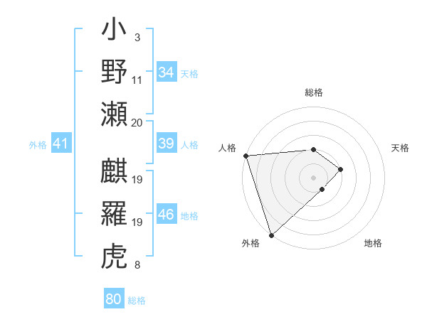 小野瀬 麒羅虎さんを姓名の画数から五運を鑑定