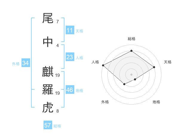 尾中 麒羅虎さんを姓名の画数から五運を鑑定