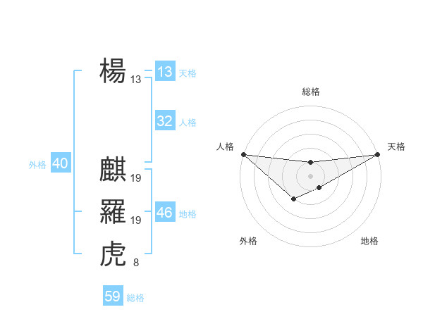 楊 麒羅虎さんを姓名の画数から五運を鑑定