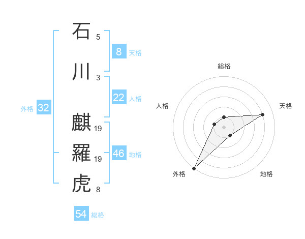 石川 麒羅虎さんを姓名の画数から五運を鑑定