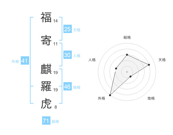 福寄 麒羅虎さんの総格は71画の3点!