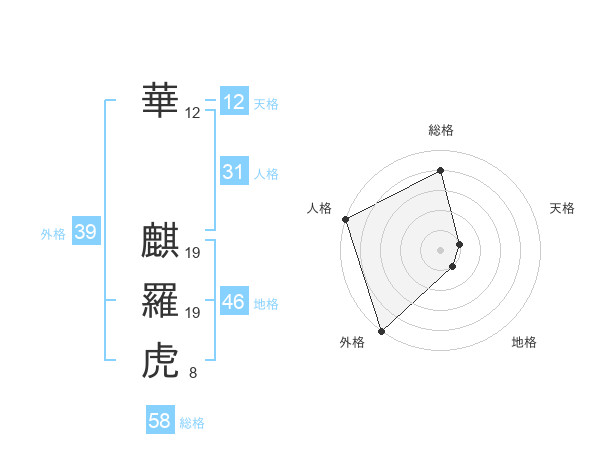 華 麒羅虎さんの外格は39画の5点!
