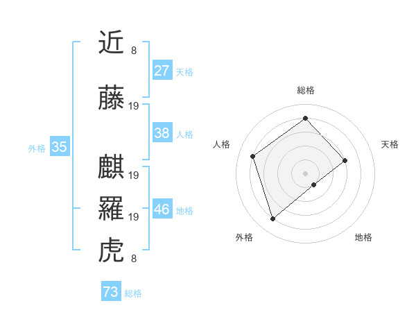 近藤 麒羅虎さんの総格は73画の4点