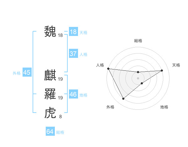 魏 麒羅虎さんを姓名の画数から五運を鑑定