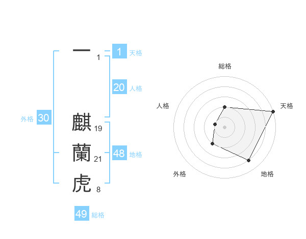 一 麒蘭虎さんの天格は1画の5点!