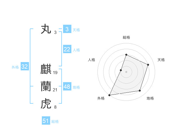 丸 麒蘭虎さんを姓名の画数から五運を鑑定