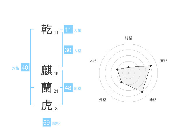 乾 麒蘭虎さんの総格は59画の1点!