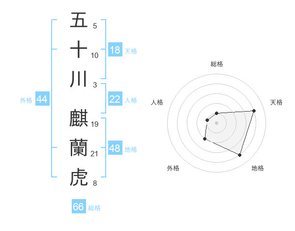 五十川 麒蘭虎さんを姓名の画数から五運を鑑定