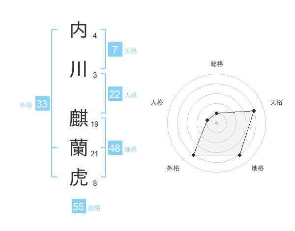 内川 麒蘭虎さんを姓名の画数から五運を鑑定