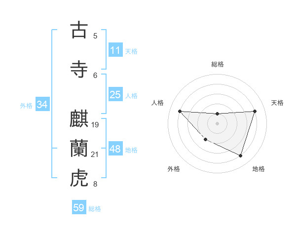 古寺 麒蘭虎さんを姓名の画数から五運を鑑定