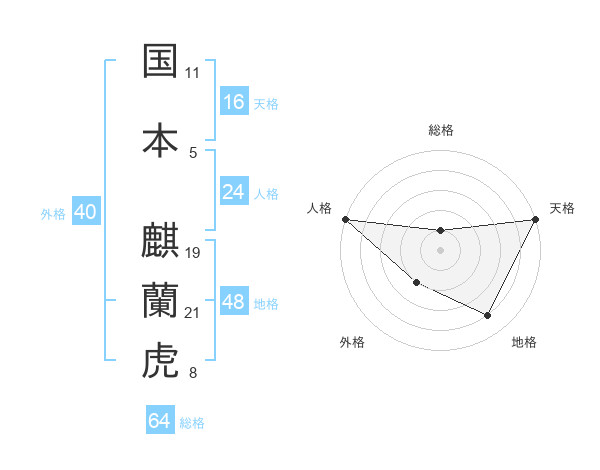 国本 麒蘭虎さんを姓名の画数から五運を鑑定