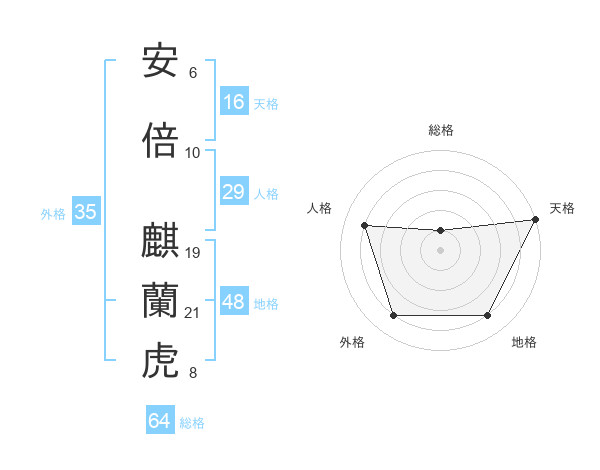安倍 麒蘭虎さんを姓名の画数から五運を鑑定