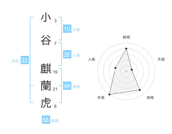 小谷 麒蘭虎さんの総格は58画の4点!