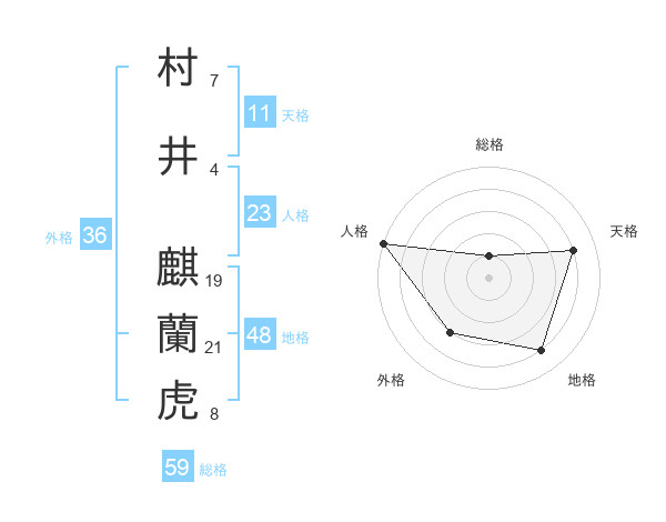 村井 麒蘭虎さんを姓名の画数から五運を鑑定