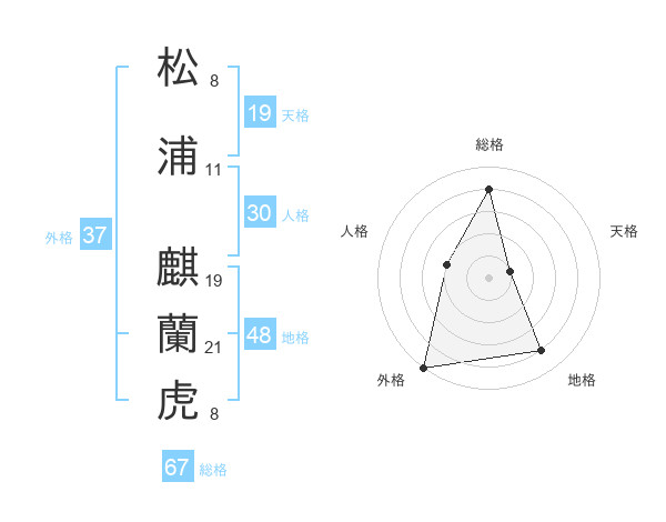 松浦 麒蘭虎さんの総格は67画の4点