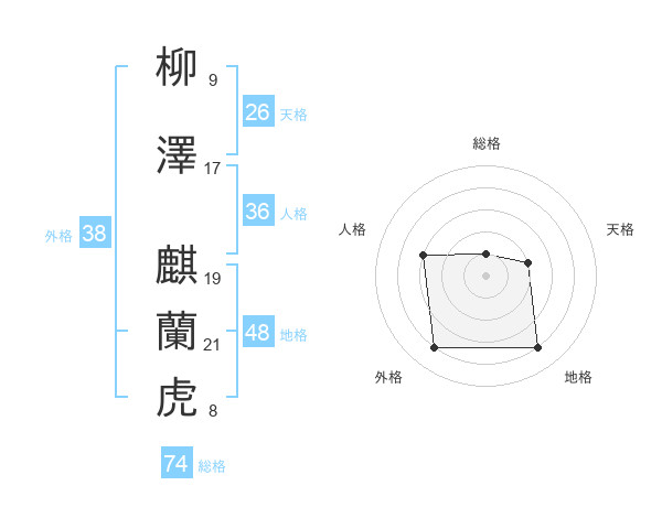 柳澤 麒蘭虎さんの総格は74画の1点!