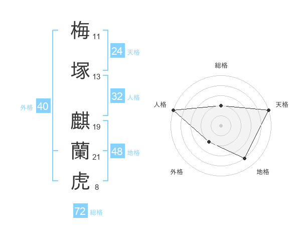 梅塚 麒蘭虎さんの天格は24画の5点!